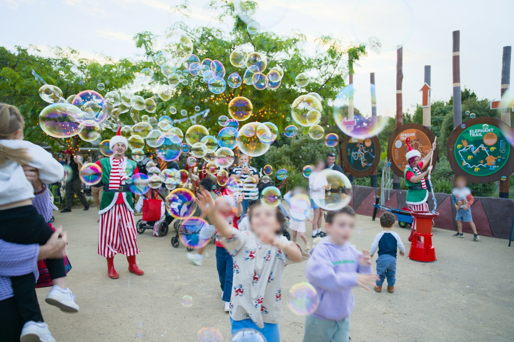 We enjoyed a moment watching the Christmas Carols and different characters walking around the zoo saying hello to everyone. Including people on larges stilts blowing bubbles and more!