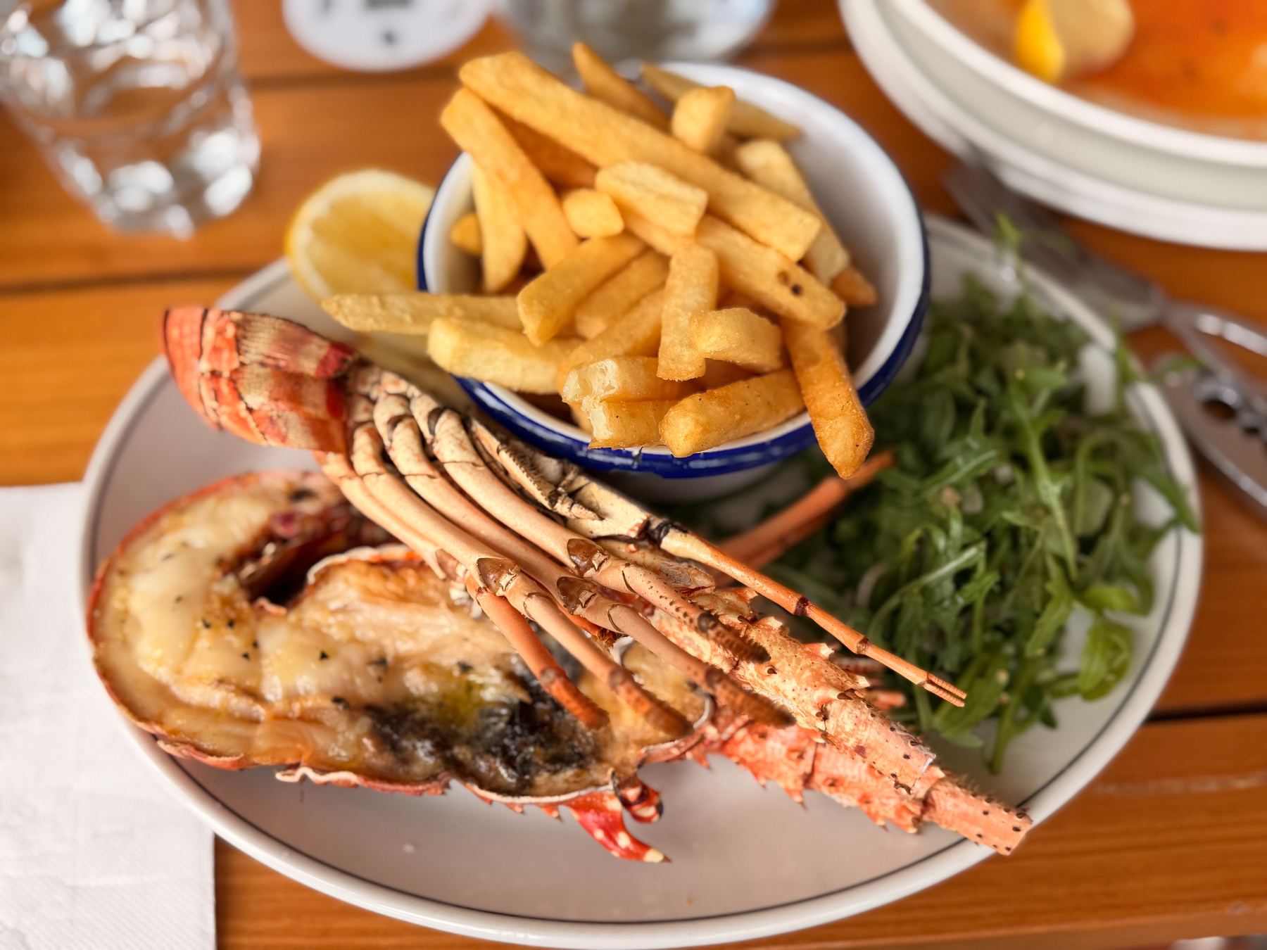 Portsea Hotel — lunch overlooking the water. Wood-fired pizza, grilled lobster, coastal architecture with French doors opening to the sea.